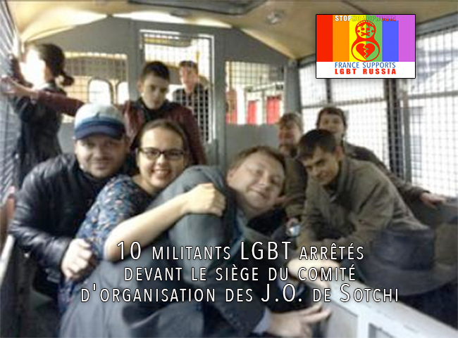 Ce Mercredi 25 septembre, un groupe de militants russes a voulu tester les garanties apportées par le pouvoir de Monsieur Poutine au Comité International des Jeux Olympiques concernant la sécurité des personnes LGBT (voyageurs etc.) sur le territoire. Ils étaient ainsi une dizaine, dirigé par « l’activiste » Nikolai Alekseev, et se sont rassemblés pacifiquement prônant l’égalité contre l’homophobie. Sans surprise, ils ont tous été interpellés par la Police, et ont d’ailleurs posté cette photo sur les réseaux, espérant faire réagir la communauté internationale. Ils avaient demandé les autorisations nécessaires, mais comme la loi contre la « propagande homosexuelle » interdit de toute façon tout rassemblement, jusqu’aux gestes les plus modestes de soutien pour la dignité humaine des personnes LGBT, le refus était courue d’avance. Ils auront défié le pouvoir mais, sous le feu des projecteurs, ils ont été libérés quelques heures plus tard.