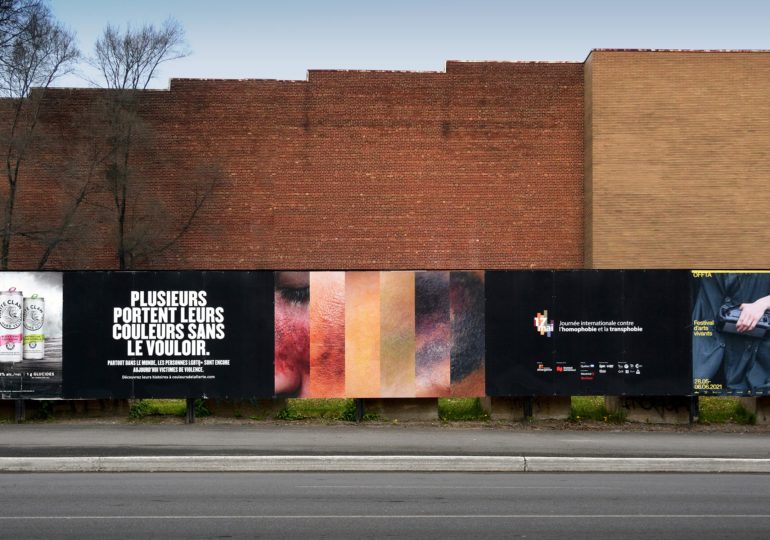 Au cours des derniers mois, la Fondation a ainsi rencontré plusieurs personnes qui ont eu le courage de témoigner des violences subies. Et ce sont les photos des ecchymoses de leurs blessures physiques qui ont été amalgamées de manière à recréer le drapeau de la fierté en symbole de la résilience et de la force du triomphe de l’égalité sur la marginalisation, l’exclusion et la violence.