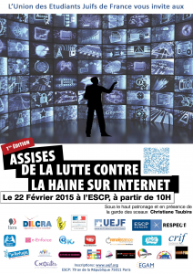 C’est pourquoi l’Union des Etudiants Juifs de France réunira le dimanche 22 février 2015, sous le haut patronage de la Garde des Sceaux, Christiane Taubira, les différents acteurs susceptibles d’agir pour empêcher la propagation de la haine sur internet autour de tables rondes et débats.
