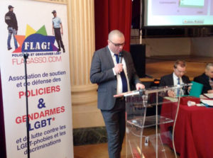 Reconduit dans ses fonctions, le président de Flag! avait demandé, en préambule de son discours, l’observation d’une minute de silence une minute de silence à la mémoire des trois policiers assassinés lors des attentats de ce début d’année (https://www.stophomophobie.com//hommage-la-police-nationale-et-la-police-municipale-endeuillees-nous-sommes-charlie/) et de toutes les victimes qui ont mis fin à leurs jours : « Un triste record dont nous nous serions bien volontiers passés ! »