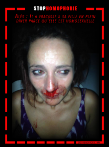 Effectivement, « rentré bien éméché de son travail », autour du barbecue, le papa de Nathalie ne va plus cesser de « vanner » sa compagne : « Il me parlait sans cesse de mes tatouages », indélicats pour une jeune fille. « Il m’a gratiné sur mon nom d’artiste, avec toujours des allusions déplacées, misogynes ou franchement homophobes… Mais je laissais couler. J’espérais passer une bonne soirée et non pas faire des esclandres chez les parents de la personne que j’aime ».