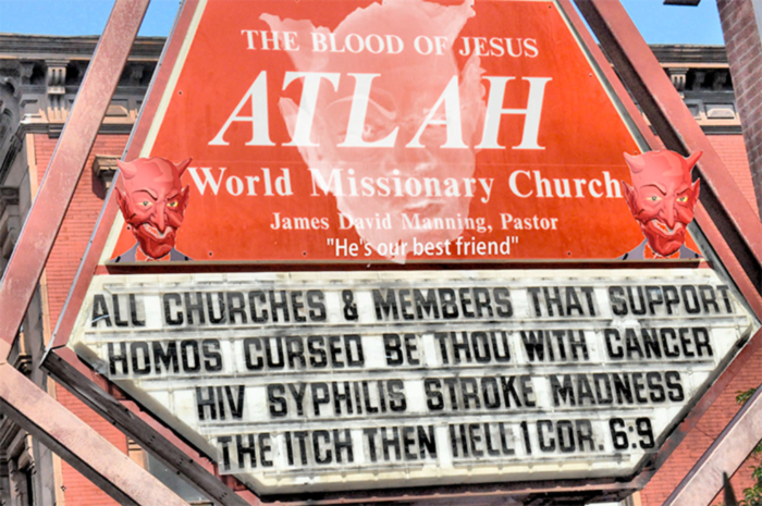 Établie depuis plus de 30 ans, l’Atlah World Missionary Church fait tache dans un quartier de Harlem en plein développement. Son pasteur connu pour diffuser de violents messages homophobes pourrait être bientôt expulsé par les personnes LGBT qu’il voue à la damnation éternelle.