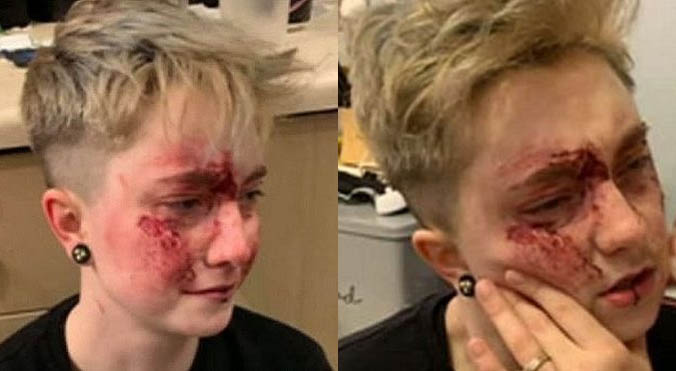 « Ils m’ont cogné dans le dos et je suis tombée par terre. Mon menton a heurté le sol et j’ai eu les genoux fracassé. Ils ont continué à me donner des coups dans la tête », a-t-elle commenté.