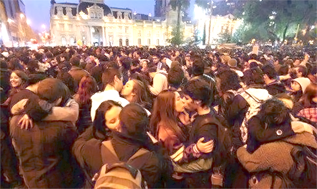 Après l’arrestation d’un couple en Tunisie pour avoir échanger un baiser en public, les tunisiens se sont rassemblés sur l’avenue BOURGUIBA pour gigantesque défilé d’échange de baisers en soutien à ce couple arrêté! sous le slogan : « qu’ils arrêtent tout les amoureux de la Tunisie«