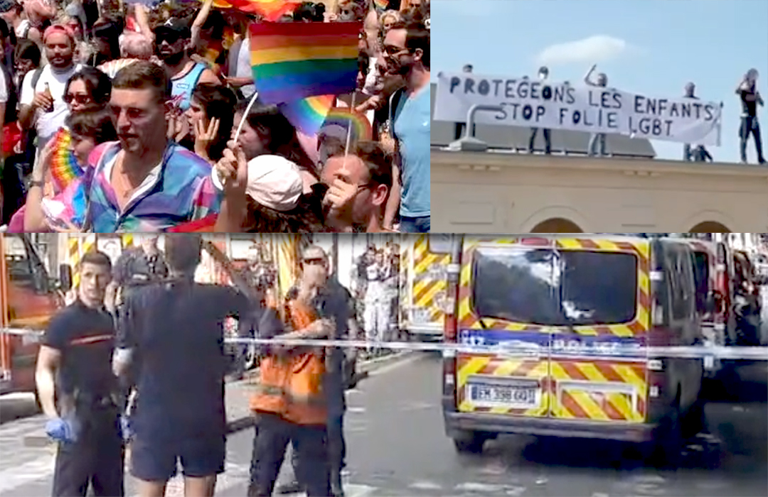 Près de 5000 personnes ont participé ce dimanche 12 juin à la Marche des Fiertés, perturbée par quelques « incidents » toutefois, dont un groupe d’hommes masqués proférant des injures et brandissant une banderole anti-LGBT depuis un toit, le bras levé, façon néonazis sous le slogan : « Protégeons les enfants, stop folie LGBT ».