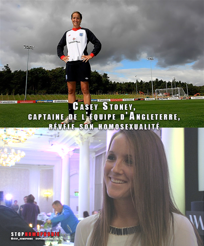 Casey Stoney, capitaine de l’Angleterre lors des JO-2012, compte 116 sélections. Elle a expliqué qu’elle avait été incitée après le coming out du plongeur anglais Tom Daley à l’issue de ces jeux Olympiques à Londres.