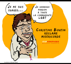 Des aveux surprenants et ambigus qui ont enflammé les réseaux tandis que Christine Boutin assure que son engagement pour la défense des homosexuels est sincère et condamne avec force et fermeté ces actes odieux et inacceptables à l’encontre des personnes LGBT : « Je dénonce une manipulation des médias. J’ai été moquée mais toute confession est le sacrement de la tendresse de Dieu, sa manière de nous embrasser. Je comprends que l’on puisse remettre en doute mes propos mais je suis bien décidée à corriger mes erreurs. La Semaine Sainte est le temps qui nous invite le plus à rester près de Jésus : l’amitié se voit dans l’épreuve. Alors, aimons-nous les uns les autres et restons solidaires pour lutter contre la haine. Je pense à vous. »
