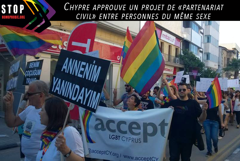 Le gouvernement de Chypre a approuvé le 6 avril dernier, un projet de loi pour permettre aux couples homosexuels de légaliser leur relation par une procédure d’enregistrement distincte du mariage, impliquant les mêmes responsabilités et avantages, à l’exception du droit d’adopter des enfants. Élaboré depuis plus de deux ans, le texte vient d’être soumis au Parlement.