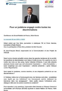 « Quel regard le Judaïsme, comme doctrine, et ses dirigeants portent-ils sur ces discriminations ? A l’intérieur même de la Communauté juive, les femmes sont-elles considérées avec équité par nos institutions? Les homosexuels sont-ils réellement les bienvenus dans nos synagogues ? Dans quelle mesure l’orthodoxie juive dialogue-t-elle avec les autres courants du Judaïsme ? »