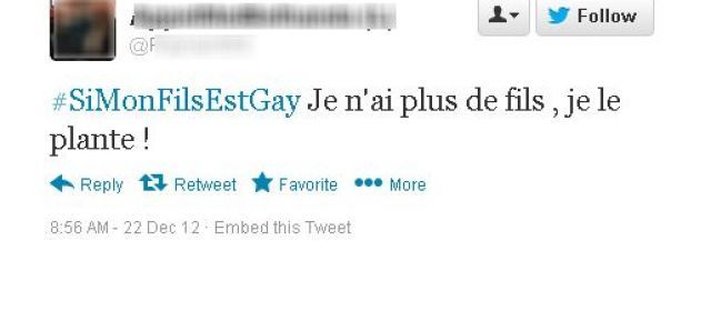 Une vague de tweets homophobes, sous couvert d’humour et réunis sous le mot-clé (hashtag) #SiMonfilsEstGay, a contaminé Twitter ce samedi 22 décembre 2012. Il a d’ailleurs rapidement grimpé en tête des sujets les plus importants, dès 17 heures.