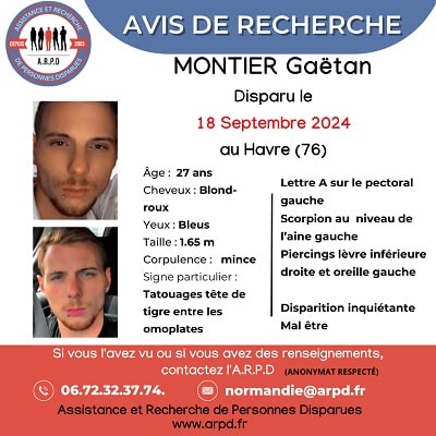 L’association « Assistance et recherche de personnes disparues » avait déjà publié un avis en septembre pour alerter le public. La police demande à toute personne ayant des informations de contacter rapidement la gendarmerie de Seine-Maritime.