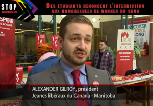 « Nous croyons que c’est discriminatoire, homophobe et que c’est basé sur de vieilles recherches. » — Alexander Gilroy, président des Jeunes libéraux du Canada – Manitoba