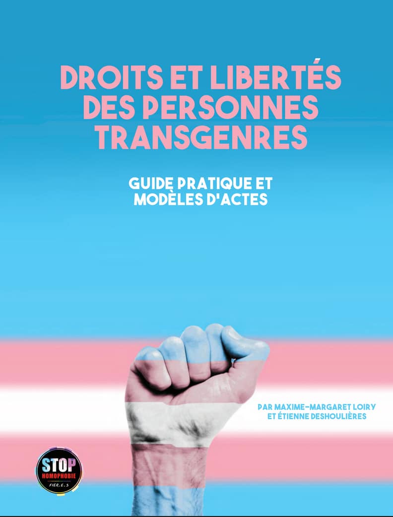 STOP Homophobie met à disposition son guide pratique « Droits et libertés des personnes transgenres ». Ce document contient toutes les informations utiles pour effectuer la modification du prénom et de la mention sexe à l’état civil (Partie 1), sur les documents d’identité (Partie 2) et dans la vie civile (Partie 3). Il contient des conseils pratiques et des modèles d’actes pour faciliter les démarches des personnes transgenres, des militants associatifs et de leurs avocats.