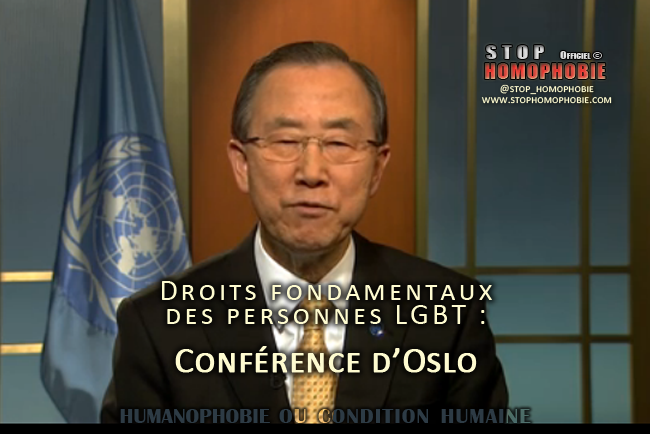 C’est pourquoi la France est determinée, grâce à la coordination de tous les acteurs, à soutenir aux Nations Unies le processus en cours pour la dépénalisation universelle de l’homosexualité et pour une meilleure garantie des droits fondamentaux des personnes LGBT au niveau mondial. Le Secrétaire général des Nations Unies Ban Ki-Moon est fortement mobilisé sur le sujet, comme il l’a rappelé à travers un message vidéo :