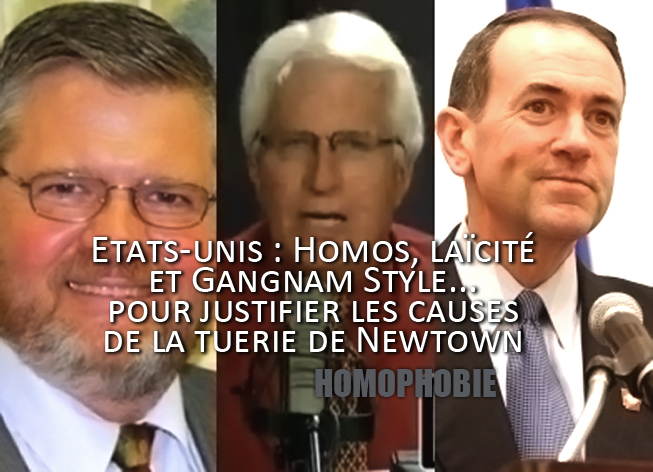 les causes de la tuerie de newtown - homosexualiteLa palme de l’indécence revient à un pasteur du Tennessee. Le révérend Sam Morris a estimé que le geste du meurtrier était le résultat de l’«humanisme» enseigné à l’école. Dans son collimateur: la théorie darwinienne de l’évolution. «Ce que cela enseigne, au fond, c’est que vous êtes un animal. Si vous êtes un animal, vous vous comportez comme un animal. Amen.» Au lieu d’enseigner les dix commandements, a-t-il a ajouté, l’école enseigne «le sexe, la rébellion contre ses propres parents, et comment être un homo». Et après tout, pourquoi pleurer sur «20 enfants abattus en un jour», quand les gens «se fichent comme de leur première chaussette des 4000 avortements pratiquées quotidiennement», a conclu ce sympathique prédicateur.