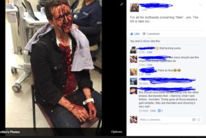« Who cares what the guy behind the podium says, don’t smash a beer bottle in someone’s face, » wrote Kentis, who described the attackers as Trump supporters.
