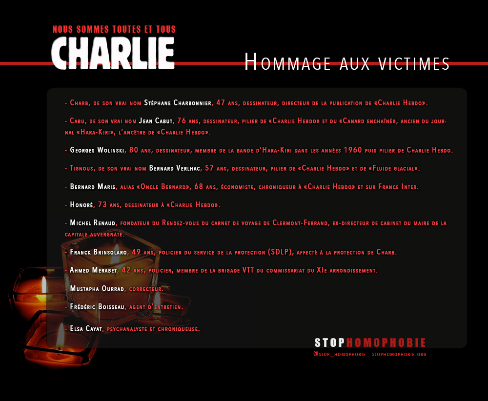 Dessinateur engagé dès son plus jeune âge, Charb dirigeait Charlie Hebdo depuis 2009. Né le 21 août 1967 à Conflans-Sainte-Honorine (Yvelines), Stéphane Charbonnier de son vrai nom avait défendu le droit de l’hebdo de publier les caricatures de Mahomet, malgré les menaces. Il y a deux ans, dans une interview au Monde, il avait déclaré: « Je n’ai pas de gosses, pas de femme, pas de voiture, pas de crédit. C’est peut-être un peu pompeux ce que je vais dire, mais je préfère mourir debout que vivre à genoux. »