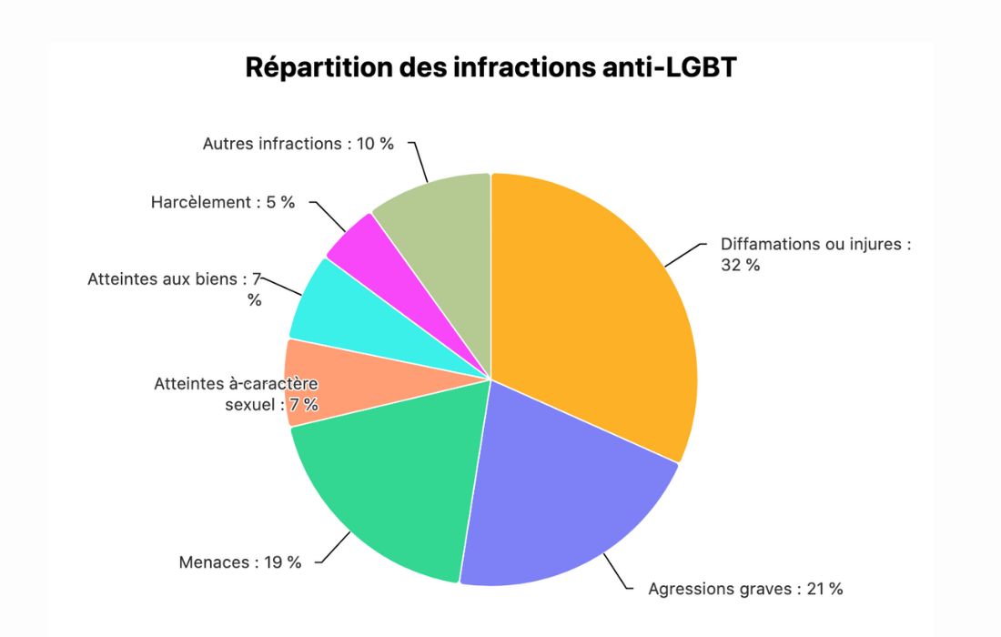 Les infractions sont majoritairement verbales. Les injures représentent 32 % des actes, les menaces 19 % et les agressions physiques 21 %. L’Observatoire souligne toutefois que la hausse des chiffres peut également refléter une meilleure déclaration des faits et une qualification plus précise des infractions.