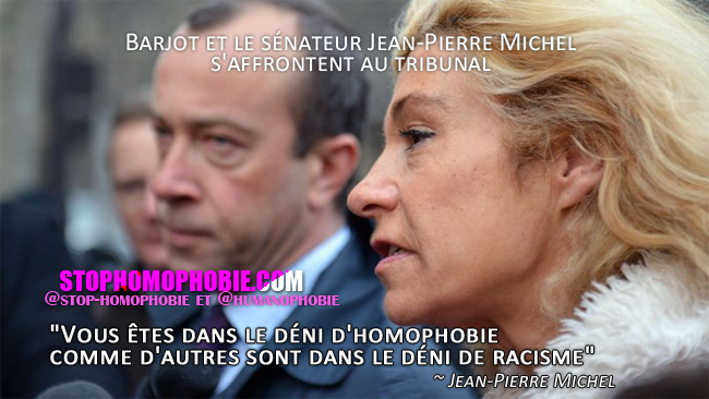 Barjot et le sénateur Jean-Pierre Michel s’affrontent au tribunal : Dans une lettre du 26 février, dans laquelle il refusait de recevoir le collectif, le sénateur PS estimait que celui-ci représentait « la pire des homophobies ».