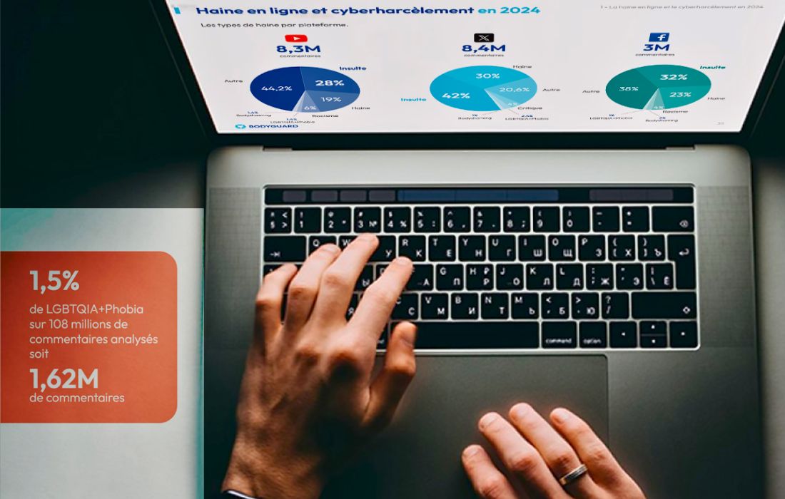 La haine sur les réseaux sociaux a connu une hausse significative de 16 % en 2024, selon le premier Observatoire des interactions en ligne publié par la startup Bodyguard. Sur 3,8 milliards de commentaires analysés, 108 millions ont été identifiés comme haineux, confirmant une tendance inquiétante.