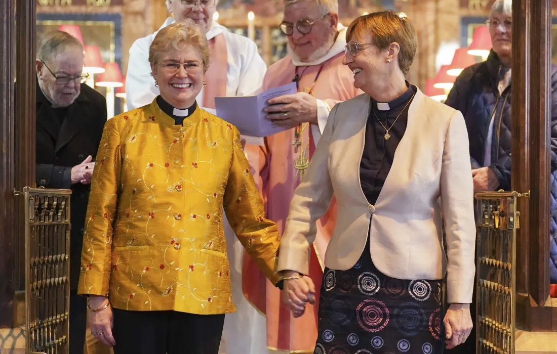 Les deux femmes, également révérendes dans la paroisse, ont ainsi été bénies pour leur « amour et amitié » ainsi que leur « engagement mutuel », a souligné pendant l’office leur confrère, le chanoine Andrew Dotchin.