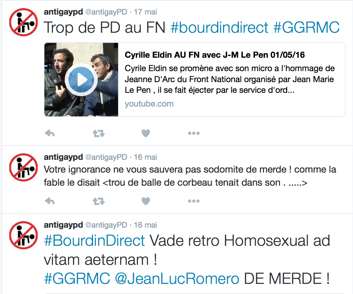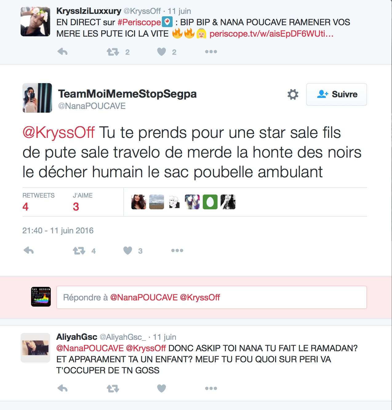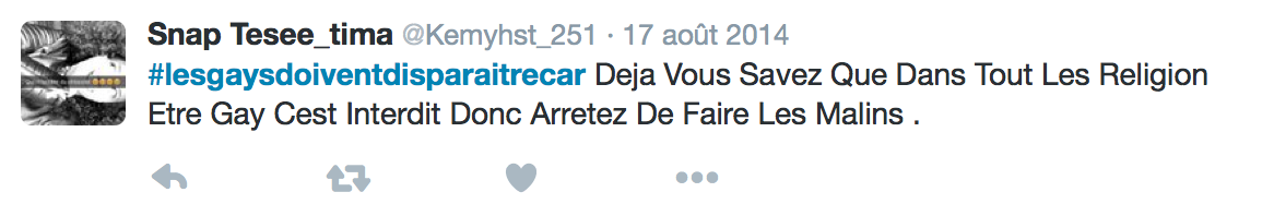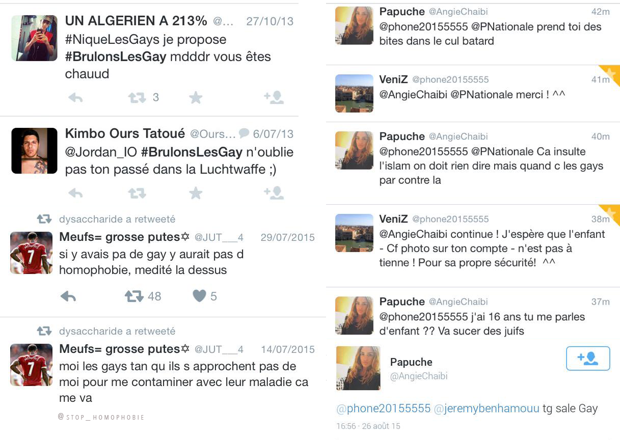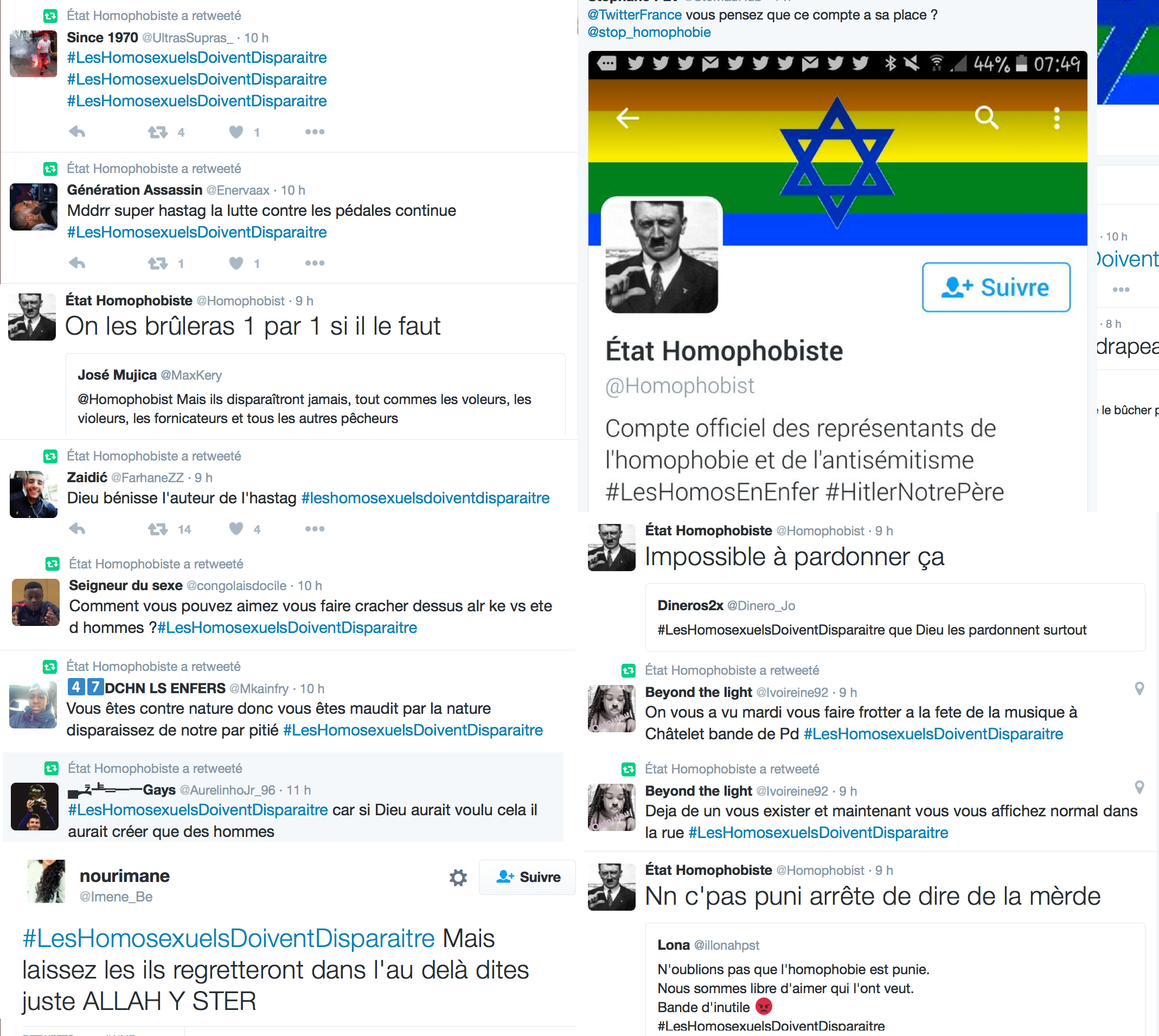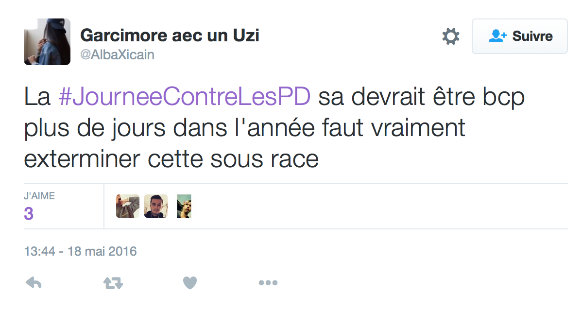 Voici une liste de quelques-uns des messages que nous avons reçu depuis le 17 mai dernier. Les posts ont souvent été supprimés, suite à nos signalements, mais tous les comptes n’ont pas été suspendus.