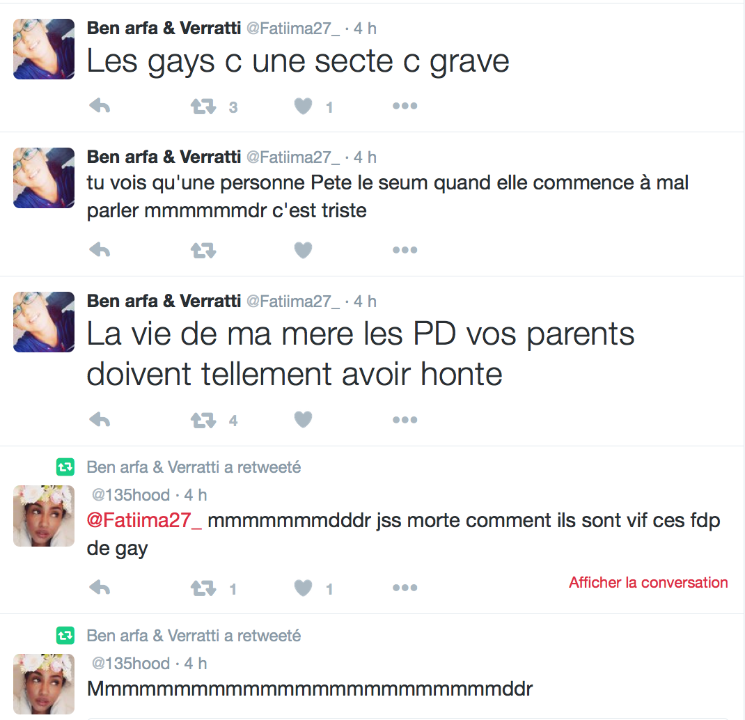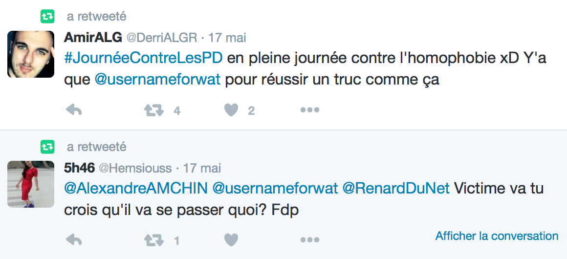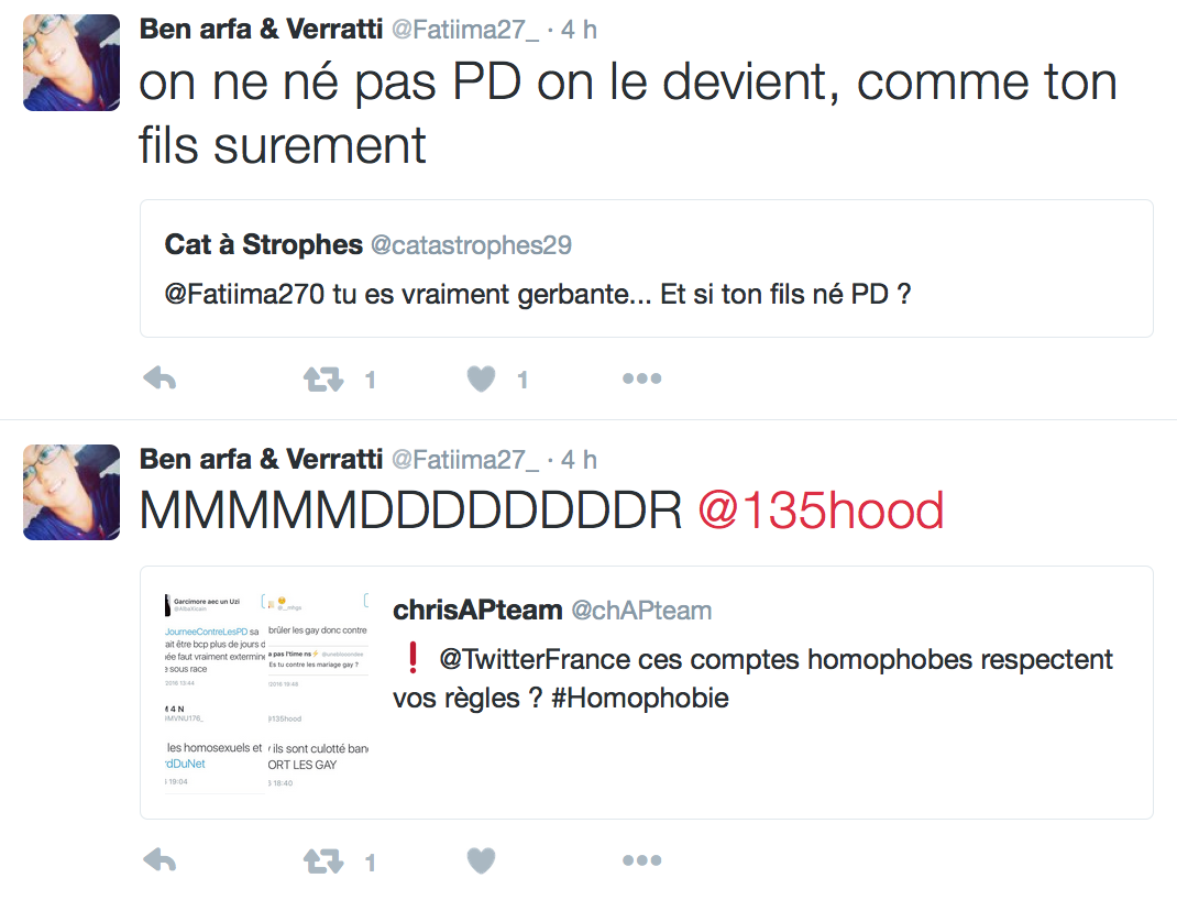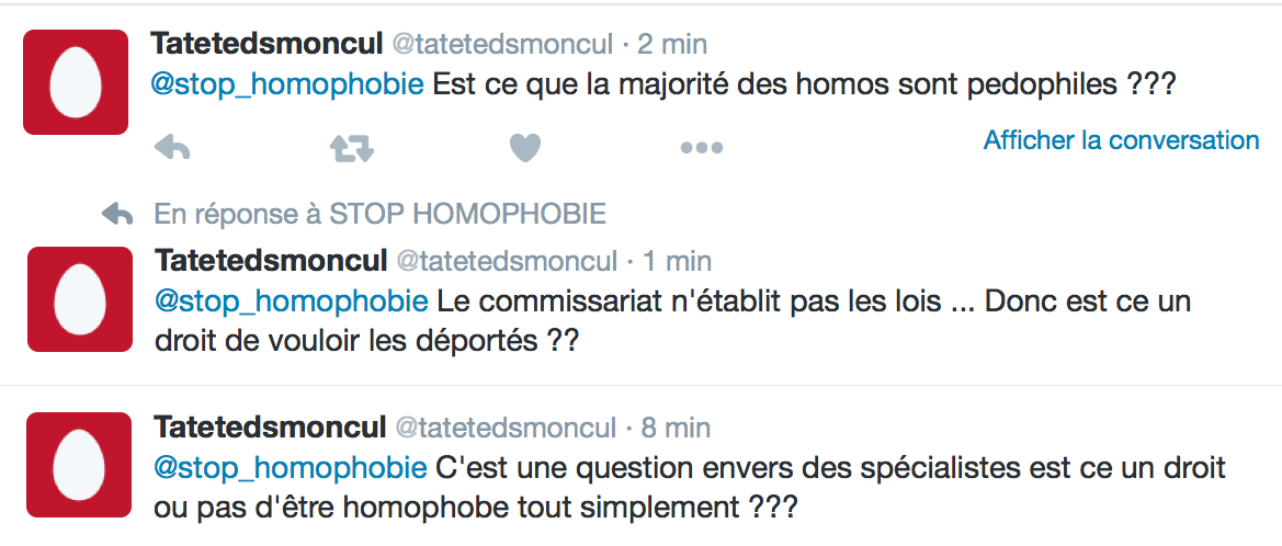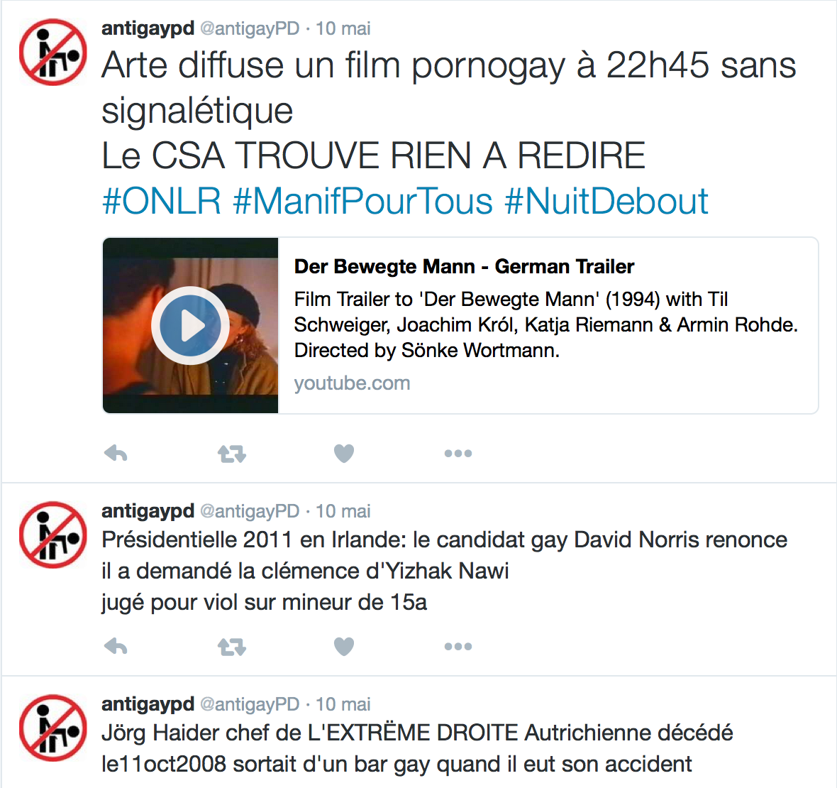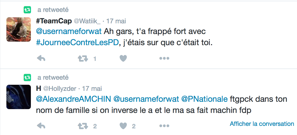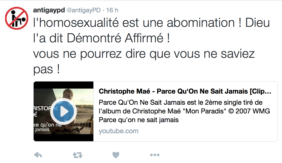 Voici une liste de quelques-uns des messages que nous avons reçu depuis le 17 mai dernier. Les posts ont souvent été supprimés, suite à nos signalements, mais tous les comptes n’ont pas été suspendus.