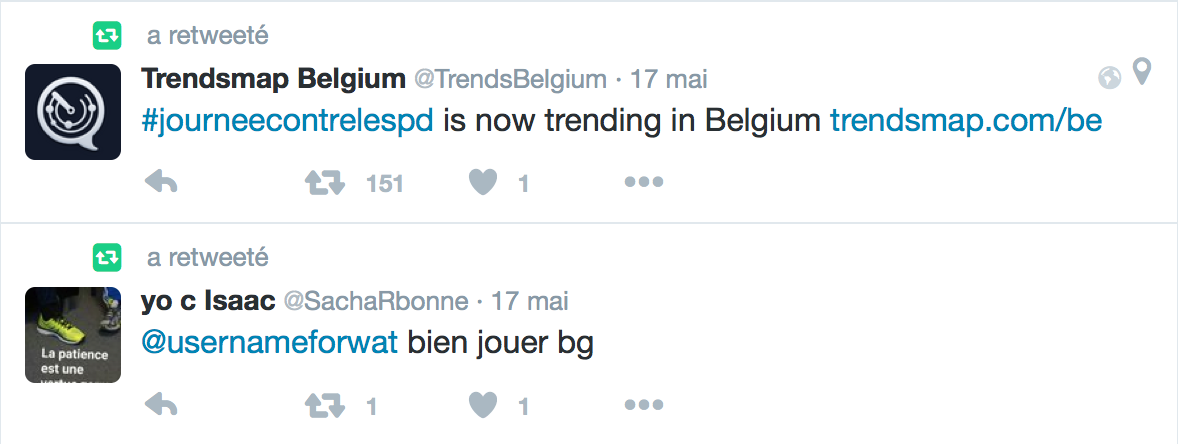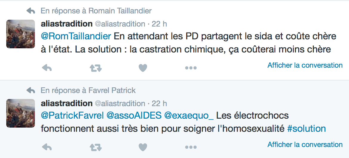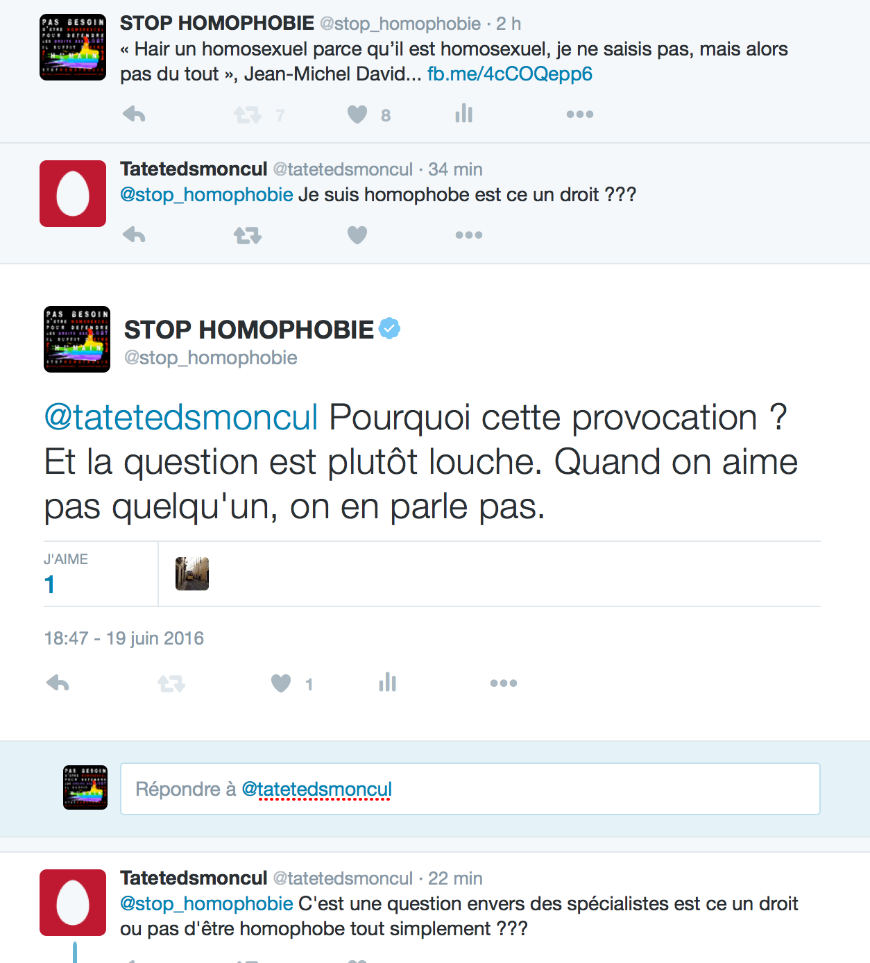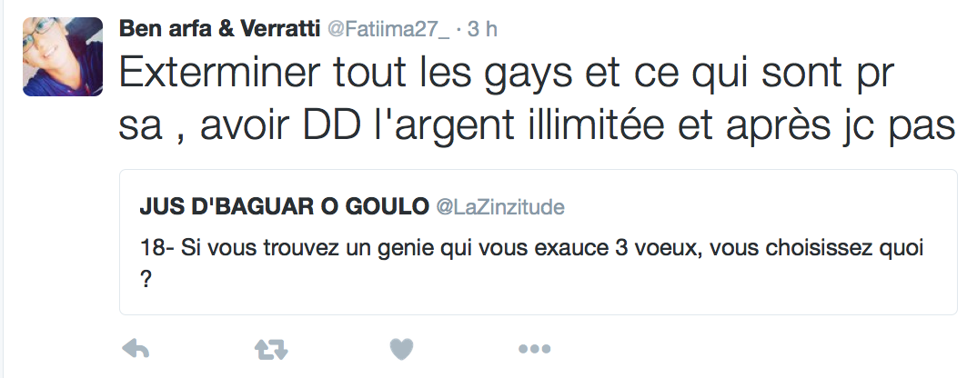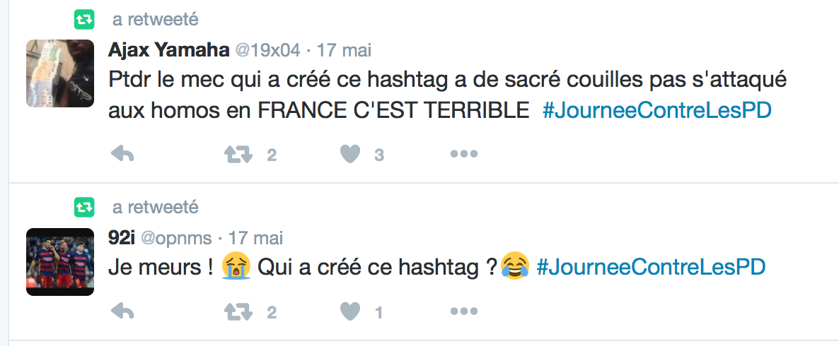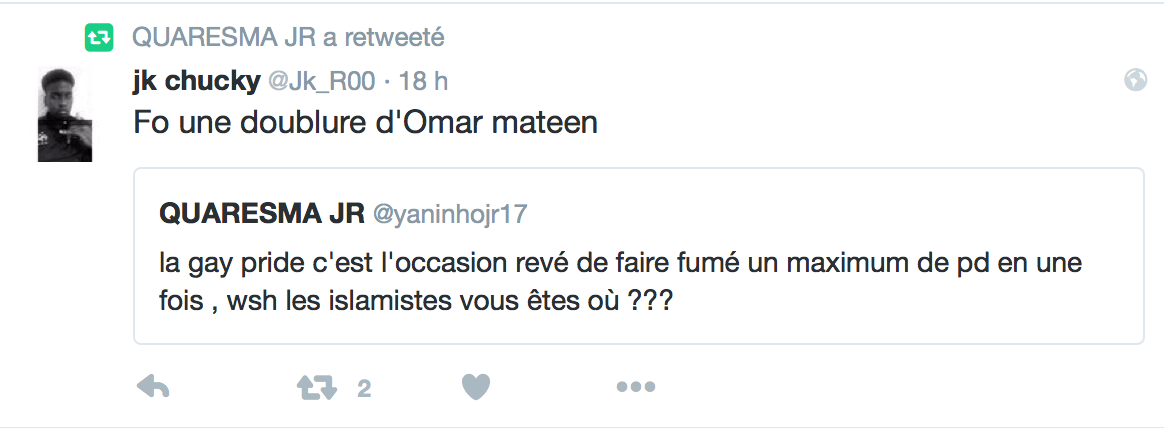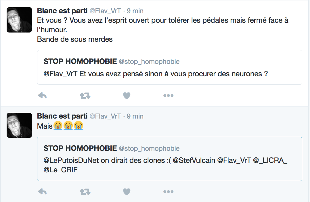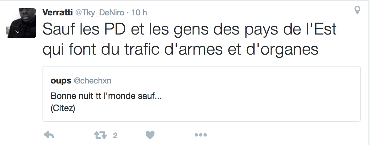 Voici une liste de quelques-uns des messages que nous avons reçu depuis le 17 mai dernier. Les posts ont souvent été supprimés, suite à nos signalements, mais tous les comptes n’ont pas été suspendus.