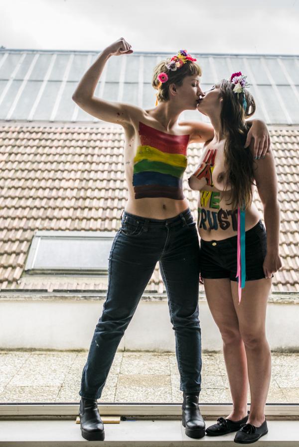 « Notre objectif était de transmettre notre message et de quitter le pays », a expliqué à l’AFP Inna Shevchenko, chef de file des Femen en France. « Une fois de plus, nous posons la question : qu’est-ce qui est le plus obscène et amoral ? Défiler seins nus ou condamner des gens pour leur identité sexuelle ? »