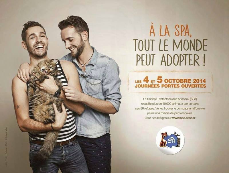 Pour promouvoir ses journées portes ouvertes des 4 et 5 octobre prochains, la Société de Protection des Animaux (la SPA) a réalisé une publicité audacieusement gay-friendly :