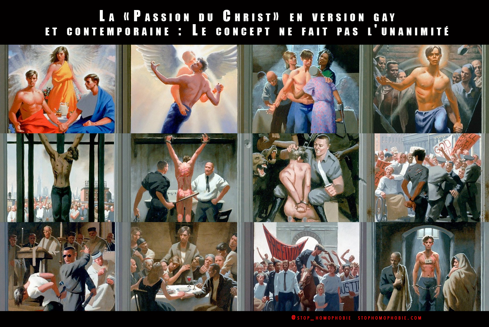 D’autant que, dans l’art LGBT, la crucifixion est largement utilisée, comme symbole des sévices et humiliations infligées aux homosexuel(le)s, notamment. « Ce sur quoi insistent les Évangiles, c’est la manière démesurée dont il était capable d’aimer. Il vivait par solidarité avec les exclus, y compris les prostituées, les lépreux, les immigrants, les veuves et les pauvres. Les chrétiens croient que Dieu s’est fait chair – une identification totale, absolue, avec tous, y compris les gens sexuellement marginalisés », précisent les auteurs.