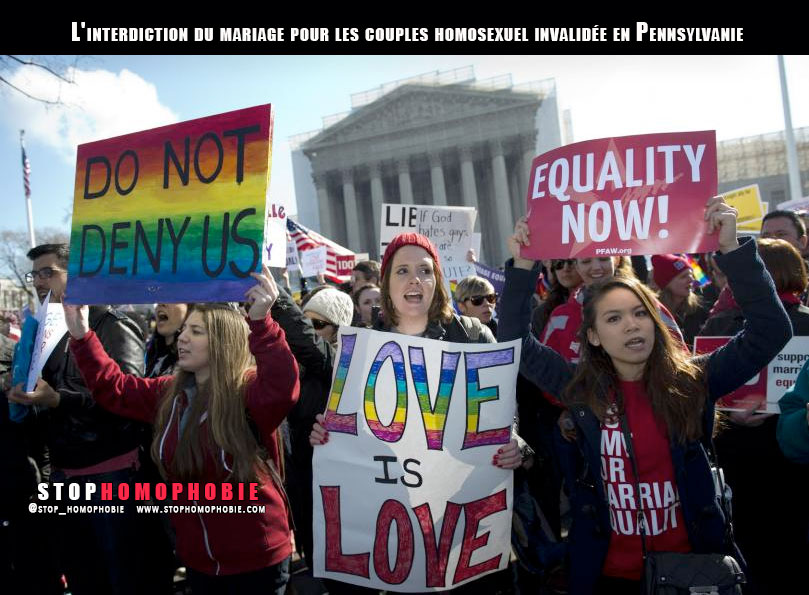 « En vertu de cette décision, les couples de même sexe qui cherchent à se marier en Pennsylvanie peuvent le faire, et les couples déjà mariés dans un autre Etat seront reconnus mariés » a-t-il ajouté.