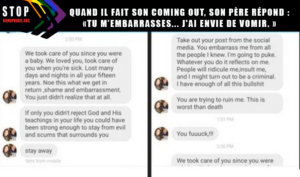 C’est la réaction du père Tyler, lorsque l’adolescent a annoncé son homosexualité. Insupportable. Inadmissible, tous ses amis et proches risquent de voir le post.
