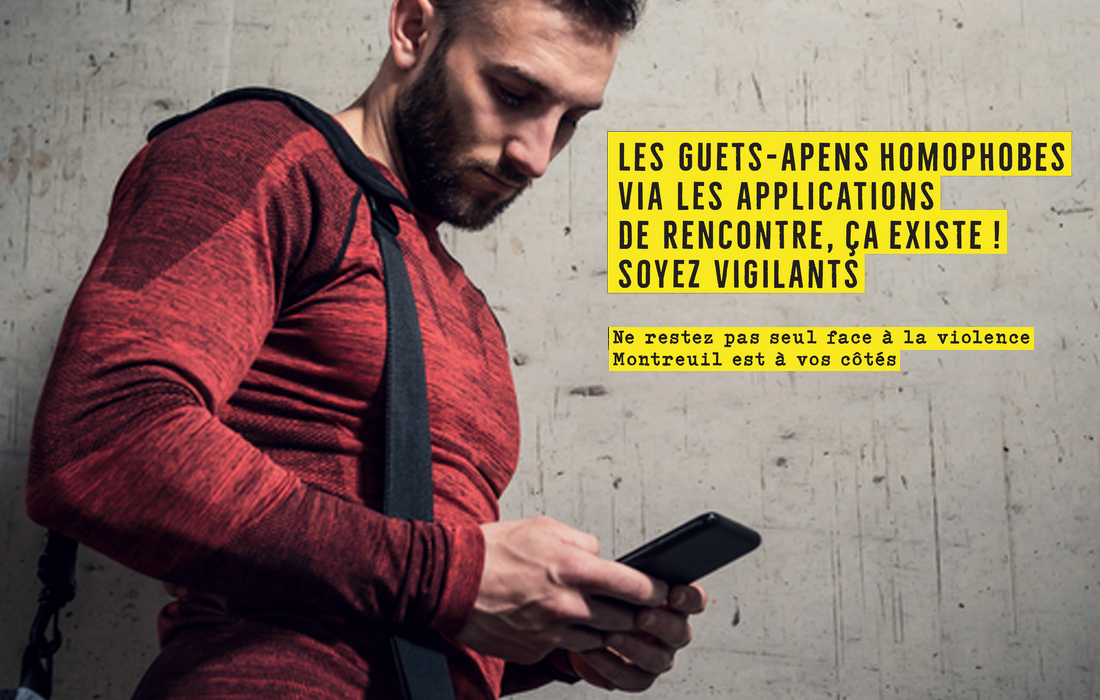 Devant la recrudescence des agressions homophobes, notamment des guet-apens organisés via les plateformes de rencontres, la municipalité de Montreuil (Seine-Saint-Denis) a initié ce lundi 22 avril une campagne de sensibilisation pour informer et encourager à la vigilance les utilisateurs.