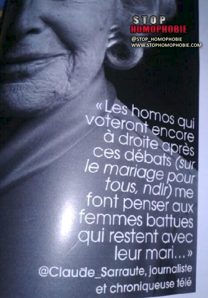 Les homos qui voteront encore à droite après ces débats (sur le mariage pour tous) me font penser aux femmes battues qui restent avec leur mari…) !