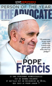 Après l’hebdomadaire Time, le magazine américain The Advocate, le plus ancien défendant les droits LGBT aux États-Unis, a désigné le pape François « personnalité de l’année », au nom d’une communauté très active cette année pour ses droits et souvent en conflit avec la hiérarchie catholique.