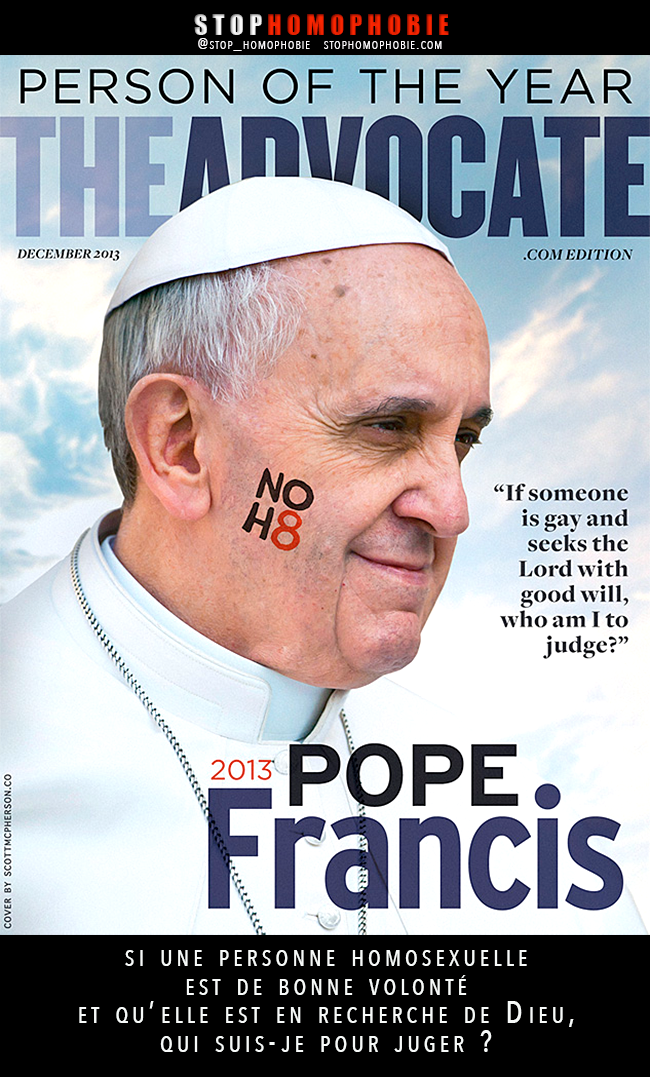 « Si 2013 reste mémorable pour l’action de centaines de personnes qui ont oeuvré pour l’égalité du mariage, elle restera aussi mémorable pour l’action d’un seul homme », affirme l’éditorial, qui rappelle la phrase prononcée par le pape au sujet des homosexuels « Qui suis-je pour juger? », un « signal aux catholiques et au monde qu’il n’est pas comme l’ancien ». Les deux papes précédents, Jean Paul II et Benoît XVI, avaient effectivement condamné l’homosexualité.