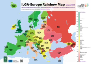 Les moins bonnes notes ont été attribuées en 2015 à Monaco (11%), l’Ukraine (10%), l’Arménie (9%), la Russie (8%) et l’Azerbaïdjan (5%). ILGA-Europe rapporte que ces pays ont notamment en commun de n’avoir passé aucune mesure favorisant l’égalité ou protégeant leurs citoyens contre les discriminations basées sur l’orientation sexuelle.