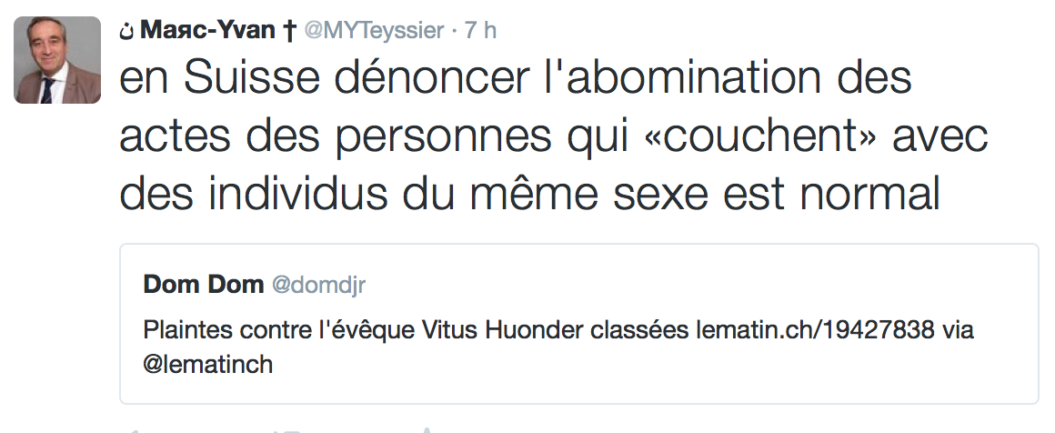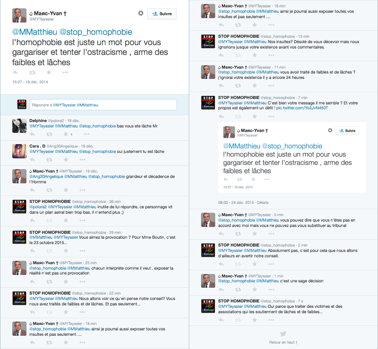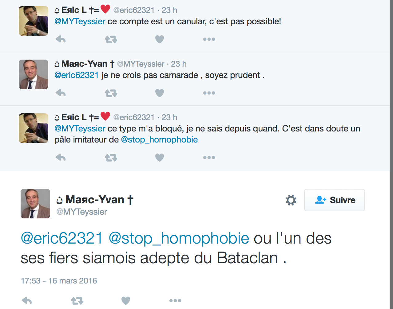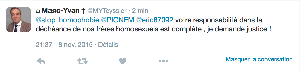 Malgré son procès pénal, Marc-Yvan Teyssier multiplie les dérapages sur son compte tweeter, allant jusqu’à nous harceler. Et il assume totalement ses provocations et violences.