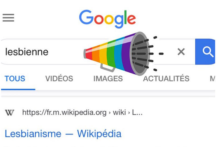 Avant ce 18 juillet, en saisissant « lesbienne » dans le moteur, vous retombiez inévitablement sur des suggestions explicites. C’est encore le cas pour les vidéos. Mais plus généralement, la recherche renvoie désormais à du contenu « informatif », avec la page Wikipédia sur le « lesbianisme » en tête de liste, comme pour les mots « gay » et « homosexuel ».