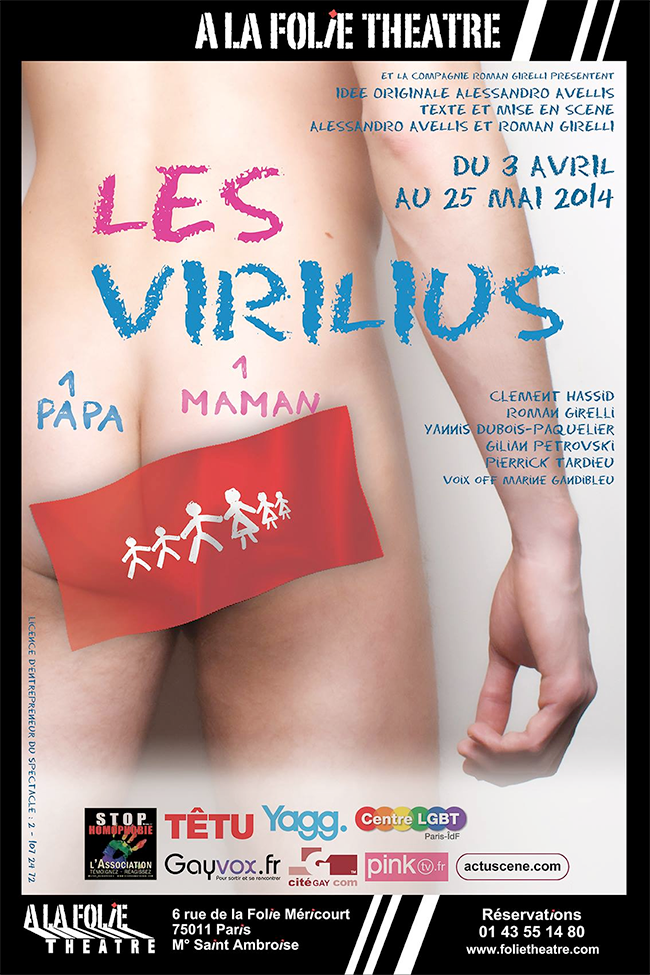 Pour le 1er anniversaire de la promulgation de la loi sur le « Mariage pour Tous », ces jeunes étudiants « torse nu » (et pas seulement) vont nous raconter une année de débats et de manifs d’homophobes décomplexés, le tout sur un ton grotesque et décalé, et dénoncer les idées réactionnaires de tous ces groupuscules (légèrement refoulés) : http://www.folietheatre.com/?page=Spectacle&spectacle=155