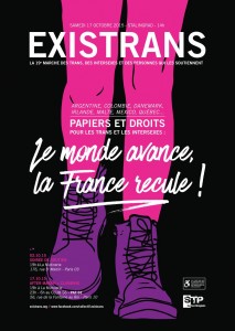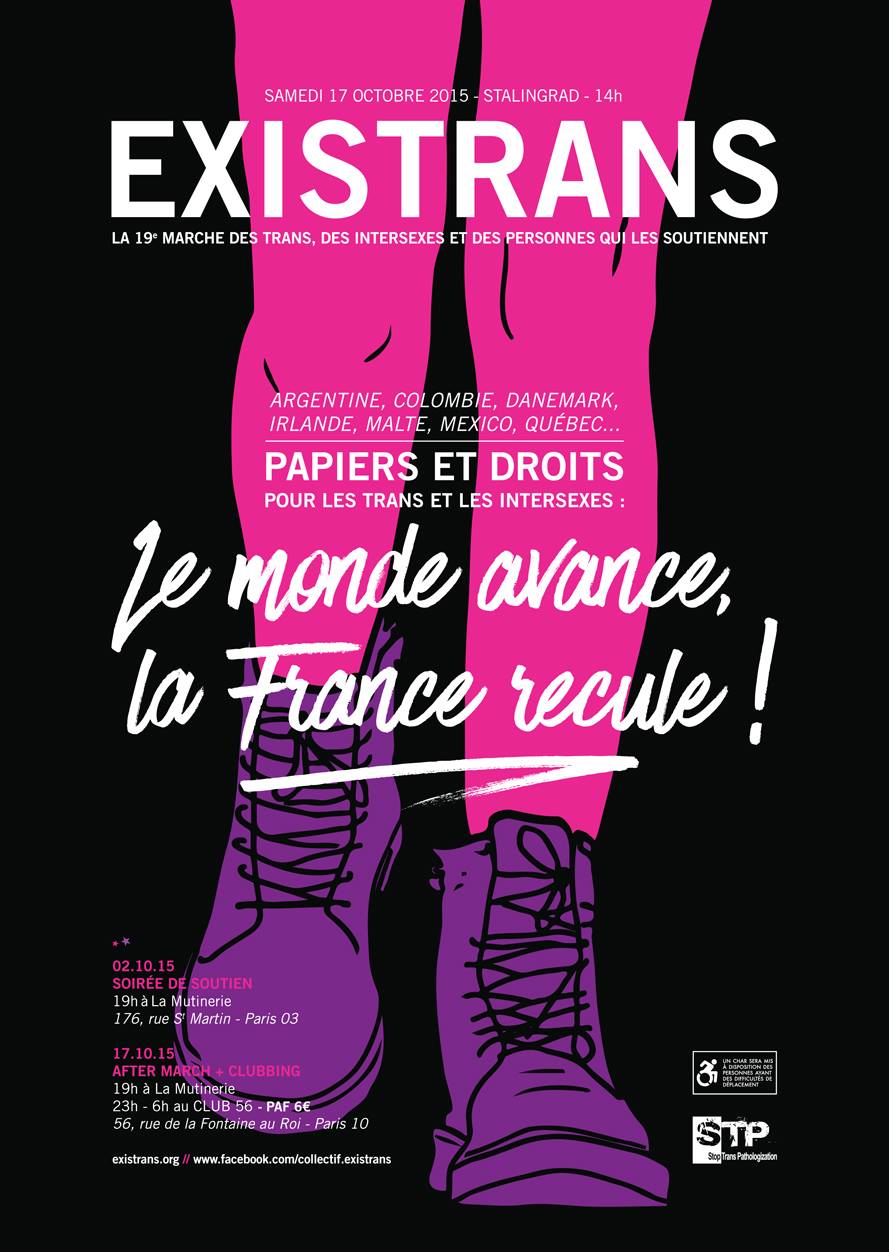 Le point de départ sera Stalingrad à 14h et la marche finira au centre de Paris avec des prises de paroles. Cette année, le collectif Existrans a réuni suffisamment de fonds pour pouvoir avoir un char, qui sera mis à disposition pour les personnes ayant des difficultés de déplacement. Après la marche, deux soirées seront prévues (à 19h à la Mutinerie et à 23h au CLUB 56).