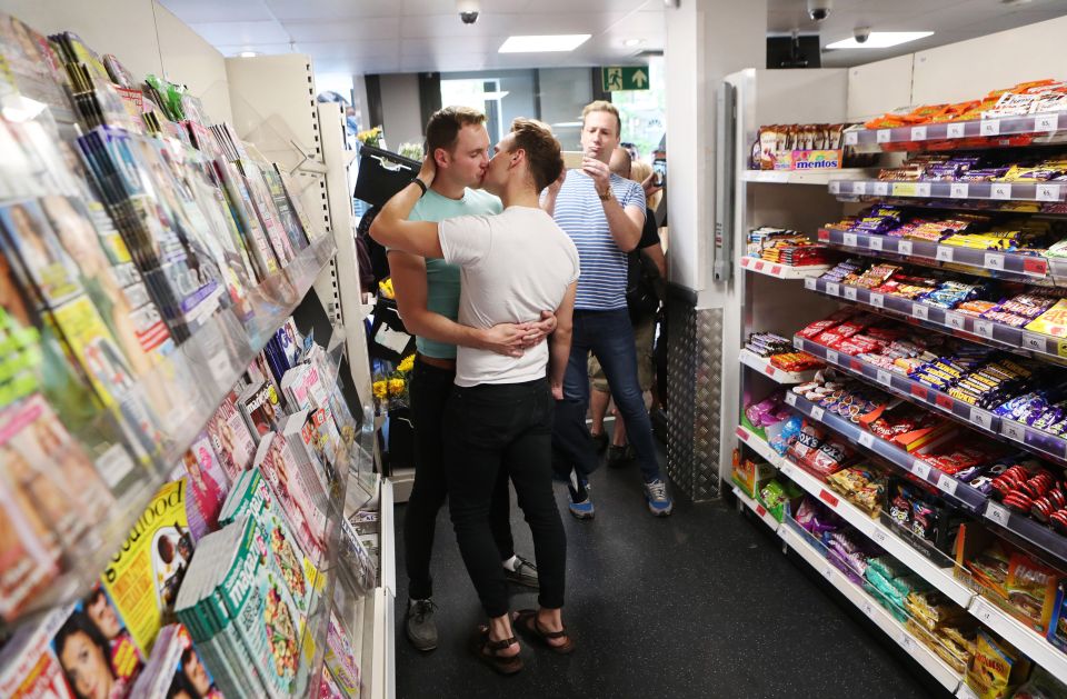 In response, dozens of gay men and women arrived at the store, set up speaker systems blasting out Diana Ross and Donna Summer before heading inside to kiss each other amid the canned goods and fresh fruit and veg.