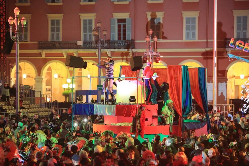 Joie, couleurs, folie… une belle ambiance ce 19 février sur la Place Masséna pour un défilé prévu à 21 heures. Dans la quintessence du carnaval niçois, ce Queernaval, 2è édition, a été voulu l’an passé par le président de l’office du tourisme de Nice, Denis Zanon, et réalisé avec le comité d’organisation de Lou Queernaval, qui rassemble des associations lesbiennes, gays, bi et intersexe de Nice.