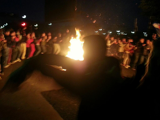 « Plusieurs centaines de manifestants, certains masqués, d’autres casqués, se sont rassemblés peu avant 20h30 à l’entrée de la rue de l’Université, face aux forces de l’ordre, en scandant : Ça va péter, ça va péter», «Dictature socialiste», «Hollande démission!» ou «Journalistes collabos».
