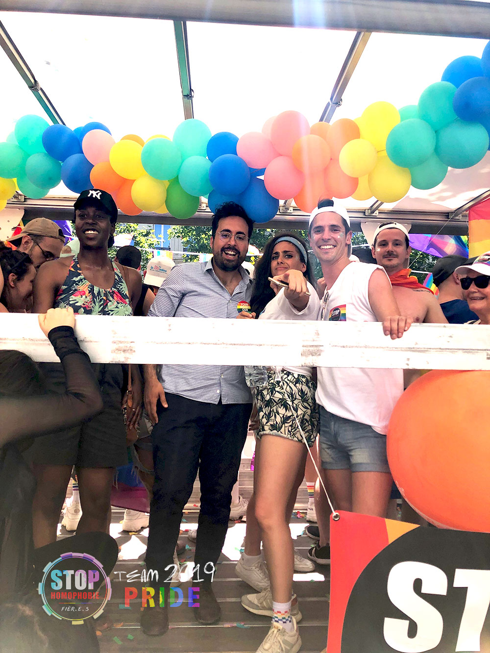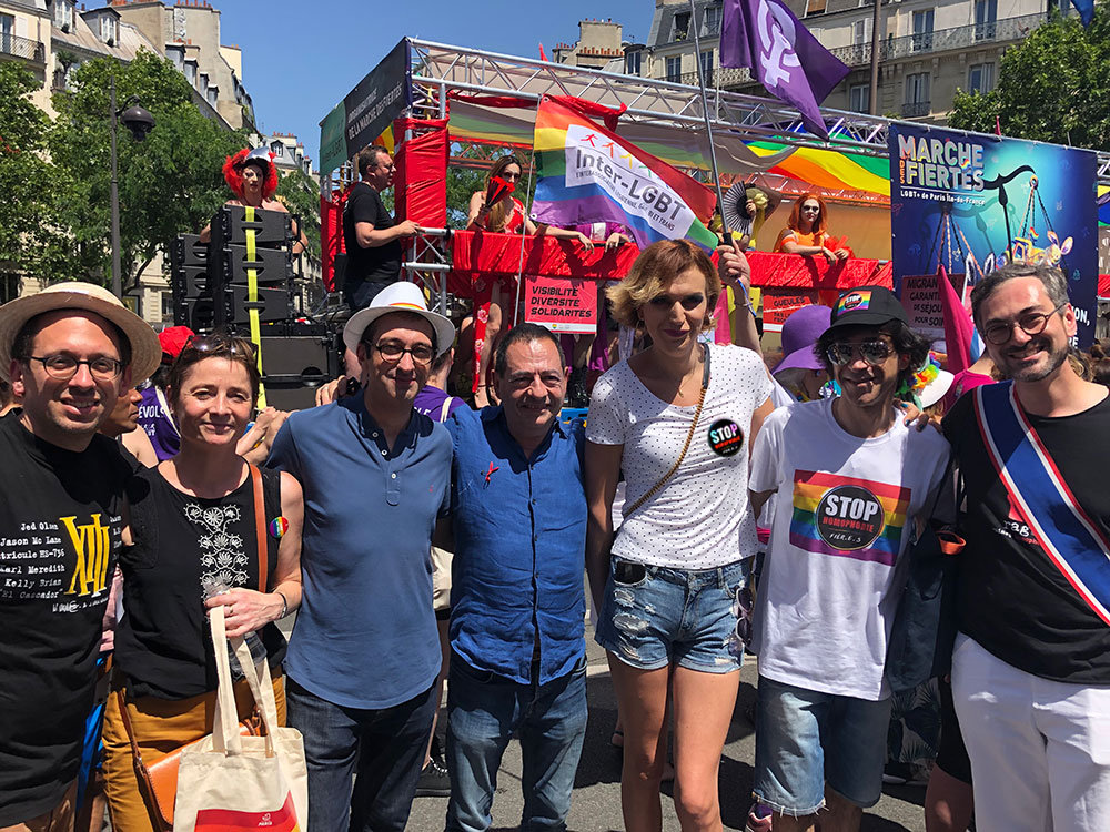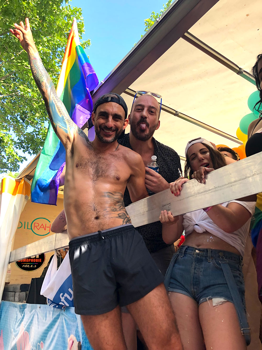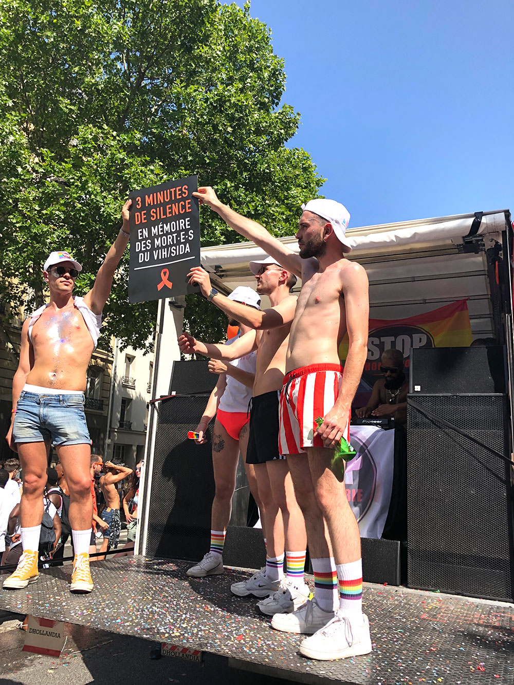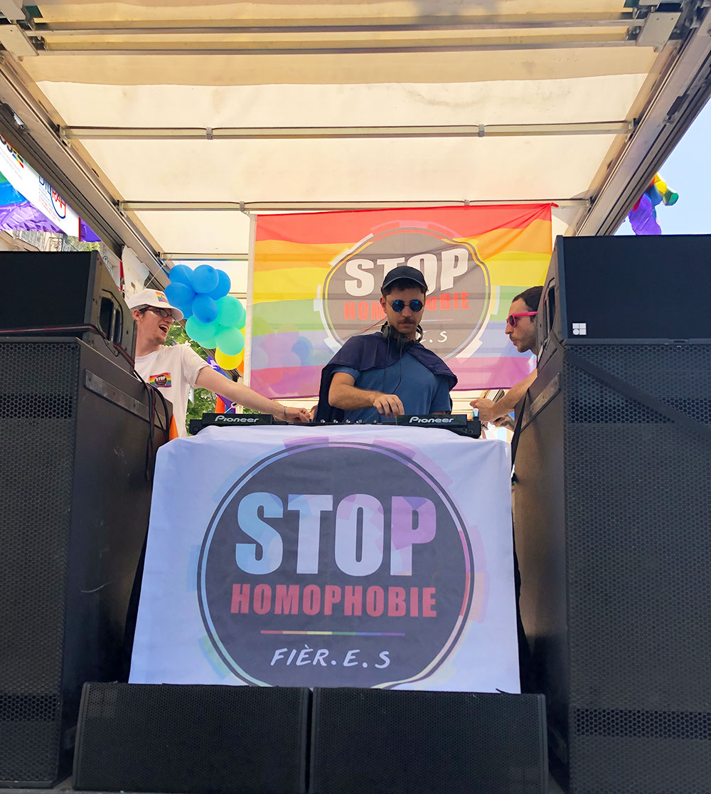 Notre équipe avait apprêté un char avec des animations, un set de DJs, diffusion de messages de sensibilisation, prévention, en partenariat avec l’association Mousse et La Martine, et le soutien de la DILCRAH (Délégation Interministérielle à la Lutte Contre le Racisme, l’Antisémitisme et la Haine anti-LGBT). Nous avons défilé aux côtés du Collectif Rouge Direct, des membres du Le Refuge et du réseau des Avocats, médecins et notaires gay friendly, qui nous épaulent au quotidien.
