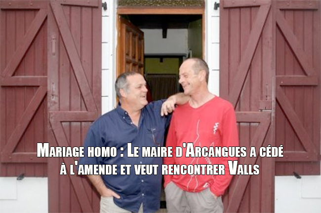 C’est une première en France. Hier, un couple gay a saisi la justice, à la suite du refus du maire de leur commune de célébrer leur mariage, désormais autorisé par la loi. Cette plainte a été déposée par Jean-Michel Martin et Guy Martineau-Espel. Farouchement déterminés à se dire oui, ces pionniers (« malgré nous ») habitent Arcangues (64), petite commune du Pays basque où repose en paix le ténor Luis Mariano, qui aimait les hommes. Malgré la promulgation de la loi sur le mariage pour tous, le 18 mai, le maire, Jean-Michel Colo, ainsi que ses six adjoints, leur opposent un non catégorique depuis près d’un mois. Et ce malgré la proposition de deux conseillères municipales disposées à recevoir une délégation de pouvoir du maire afin de marier des couples légalement.