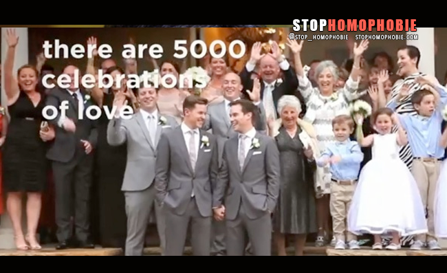 La publicité diffusée en France ne comporte pas non plus la fameuse scène de mariage homosexuel. Elle a été remplacée par… la célébration d’une victoire des joueurs de l’équipe de France.