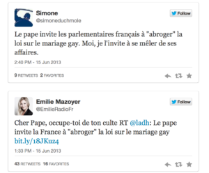 Le pape François a déclaré que le rôle des parlementaires était, parfois, « d’abroger » des lois. Certains y ont vu une attaque claire envers le mariage pour tous.