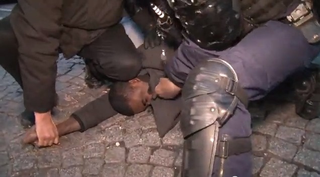 Il a le visage plaqué au sol. Le nez en sang. Autour de lui, des policiers en civil rejoints par des CRS tentent de le maitriser avant de l’embarquer par les bras et les jambes jusqu’à une voiture de police. Pendant les quelques mètres qui le séparent du véhicule, l’homme, galvanisé, continue de scander « Hollande, ta loi on en veut pas ! ».